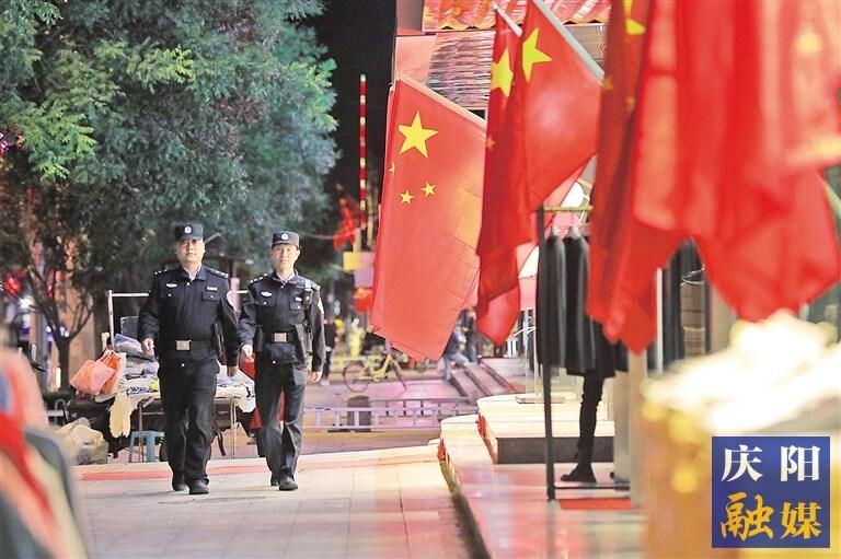 社區(qū)民警街面巡邏。慶陽融媒記者 徐雅荷 攝