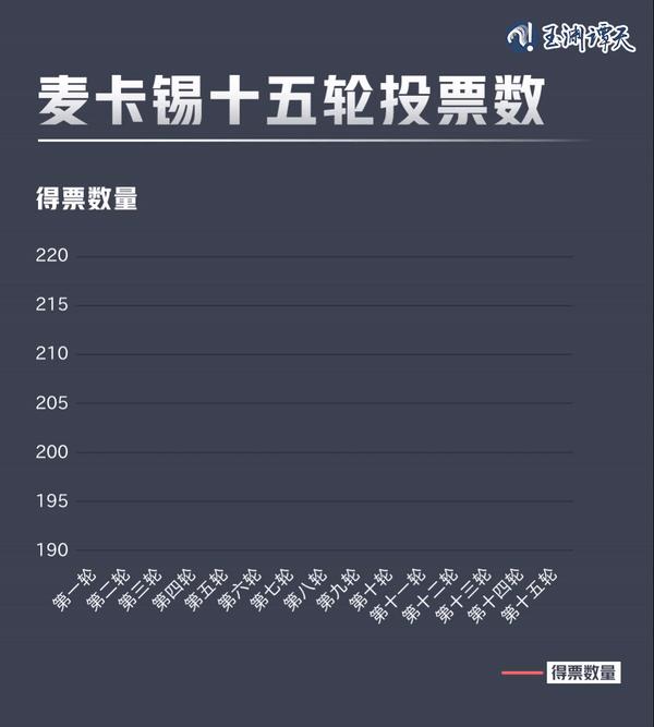 第二次,是第十四輪和第十五輪,此前始終都沒有投過贊成的6人轉(zhuǎn)變態(tài)度,投了不支持任何一方的“出席票”,從而降低了麥卡錫過關(guān)的難度。