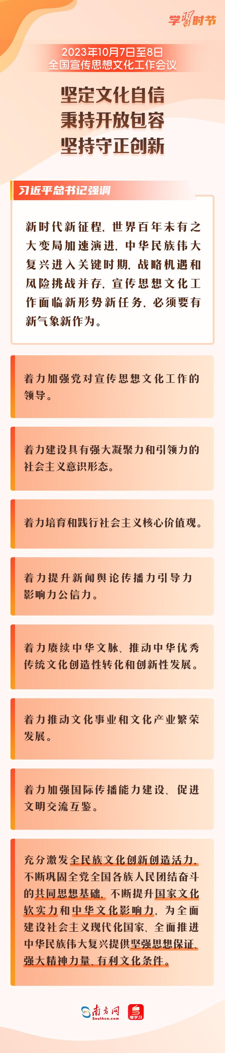 10月7日至8日,全國宣傳思想文化工作會(huì)議在北京召開,會(huì)上傳達(dá)了習(xí)近平總書記關(guān)于宣傳思想文化工作的重要指示,首次提出了習(xí)近平文化思想。