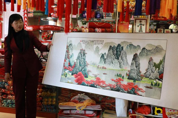 而她也在刺繡上不斷學(xué)習(xí)精進(jìn),先后到蘇州、成都等地學(xué)習(xí)蘇繡、蜀繡,融合創(chuàng)新,形成了自己的特點(diǎn)。她的作品針法線條流感強(qiáng)烈、張弛有變、色彩鮮明,構(gòu)圖疏密有致。整體構(gòu)思既有隴東大紅大綠熱烈的色彩對比,又有經(jīng)典樸素的色彩運(yùn)用,靈動(dòng)飄逸,代表作有《清明上河圖》《富貴花開》《百年好合》等。其作品也多次獲省市級(jí)大賽獎(jiǎng)勵(lì)。