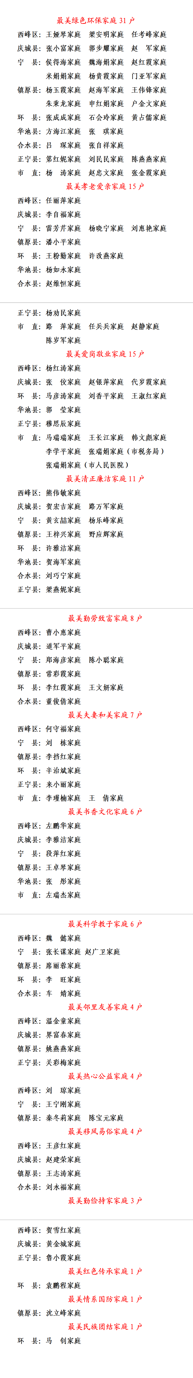 慶陽市2023年“最美家庭”候選家庭名單