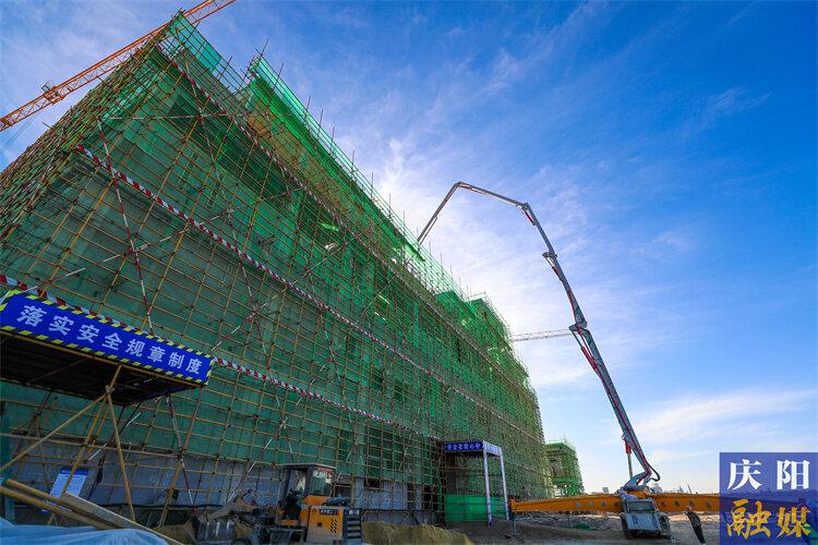 秦淮數(shù)據(jù)零碳數(shù)據(jù)中心產(chǎn)業(yè)基地項目一期主體結(jié)構(gòu)封頂。慶陽融媒記者 陳飛攝