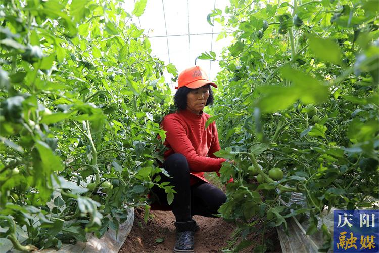正寧縣現代農業(yè)示范園內,工人給西紅柿打蔓。