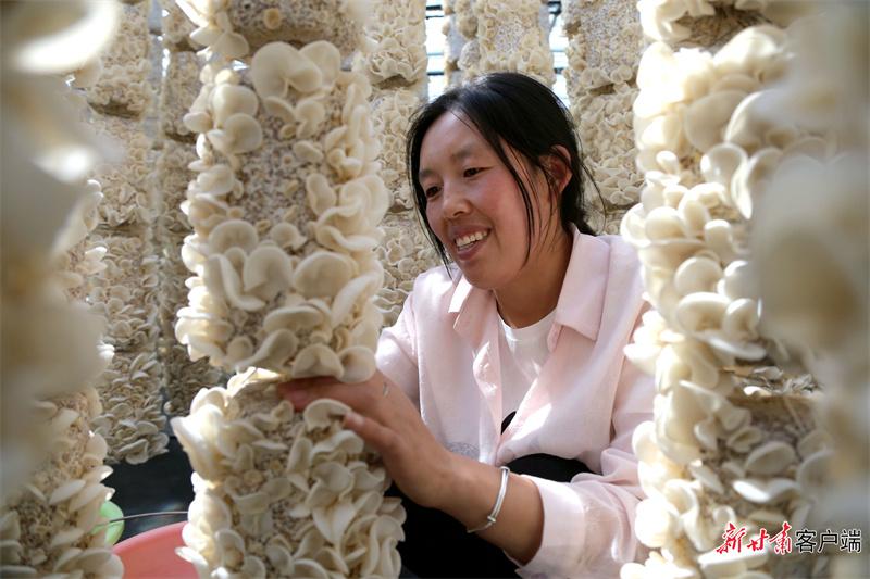 西峰區(qū)后官寨鎮(zhèn)食用菌基地科技人員檢查香菇菌種長勢。