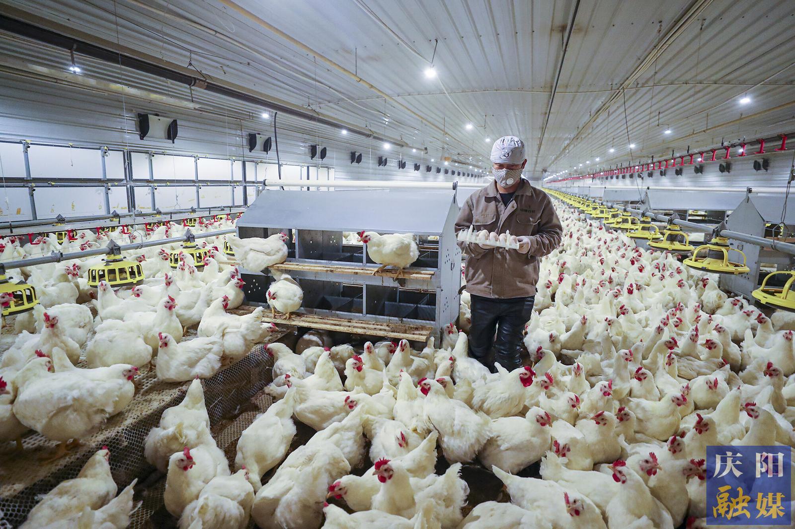甘肅圣越農(nóng)牧發(fā)展有限公司下城種雞場,工人在雞舍收取種雞蛋(2020年12月9日攝)。慶陽融媒記者 俄少飛 攝