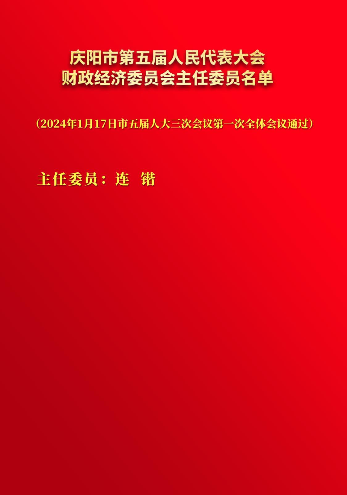 慶陽(yáng)市第五屆人民代表大會(huì)財(cái)政經(jīng)濟(jì)委員會(huì)主任委員名單