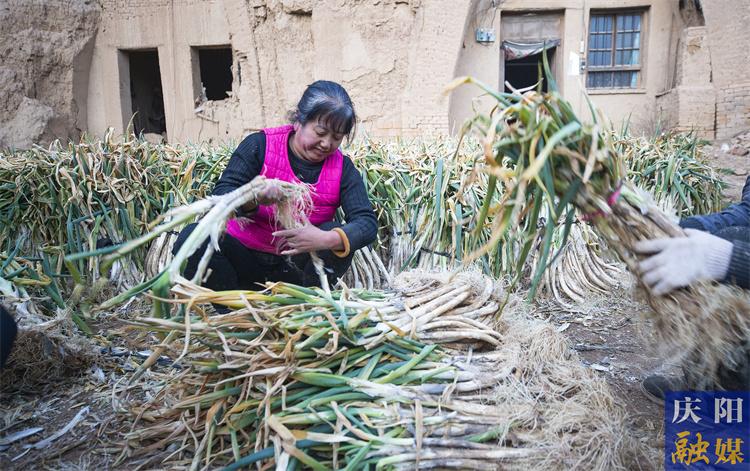 時(shí)逢初春,走進(jìn)正寧縣宮河鎮(zhèn)彭姚川村一處民宅,彭會(huì)軍夫婦和幾名村民在捆綁大蔥,空氣中彌漫著濃郁的蔥香味?!斑@大蔥莖粗肉厚,吃起來辛辣脆香?!狈N了37年大蔥的彭會(huì)軍說道。