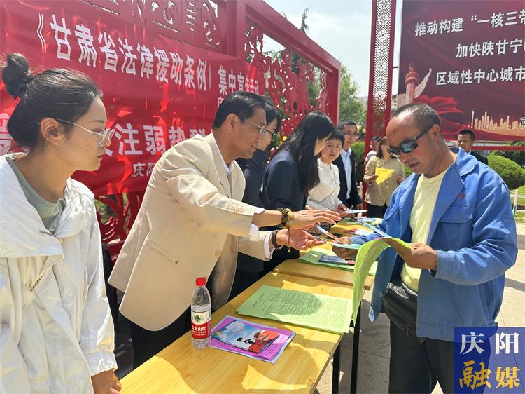 ▲慶陽市司法局在西峰城區(qū)東湖公園開展法律宣傳活動。