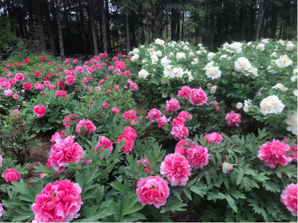 乘車出百花園,循寧文柏油公路,南行不足十分鐘即抵。走進(jìn)昔家牡丹園,花王、晨紅、百園紅霞、皇冠等百余品種的牡丹迎時(shí)綻放,滿眼花團(tuán)錦簇,恰似一幅富貴吉祥圖畫。這里的牡丹已炫美西北40余年,昔家人幾十年如一日的努力拼搏,編織成了如今美輪美奐的旖旎景觀。