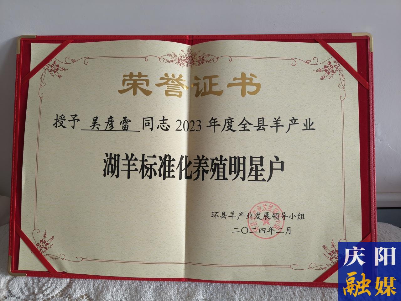 ▲吳彥雷被評選為全縣羊產(chǎn)業(yè)明星示范養(yǎng)殖戶。慶陽融媒記者 張靜 攝。