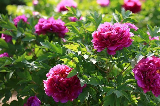每逢春末夏初,八萬多株高低起伏的各色牡丹競相開放。在濃密枝葉的陪襯和簇?fù)硐?,墨紫的、白的、黃的、粉的、紅的等各色牡丹花,猶如手持上帝恩賜的一張張“門票”似的,一株接一株,一朵接一朵,次第粉墨登場。尚未開啟的,像含苞待放的少女一樣,露出了些許鮮嫩的面容,呈現(xiàn)出了羞答答、嬌滴滴的嬌態(tài)美。激情盛開的,恰似花枝招展的大姑娘,一層一層地綻放,一瓣一瓣地展示自我,要多大方就有多大方,霸氣十足地釋放出了空前絕后的野性美。單瓣的,簡潔明凈、大方敞亮,讓觀賞者一目了然。重瓣的,滿滿當(dāng)當(dāng),咿咿呀呀、嚷嚷鬧鬧,如果你不側(cè)耳傾聽,不仔細(xì)瞧瞧,是很難揣摩透其中所飽含的秘密的。層層疊疊的各色花瓣,簇?fù)碇址置髅?、亮亮堂堂的無數(shù)枚鮮嫩花蕊,簡直就是小巧玲瓏的天使在大花壇上載歌載舞。