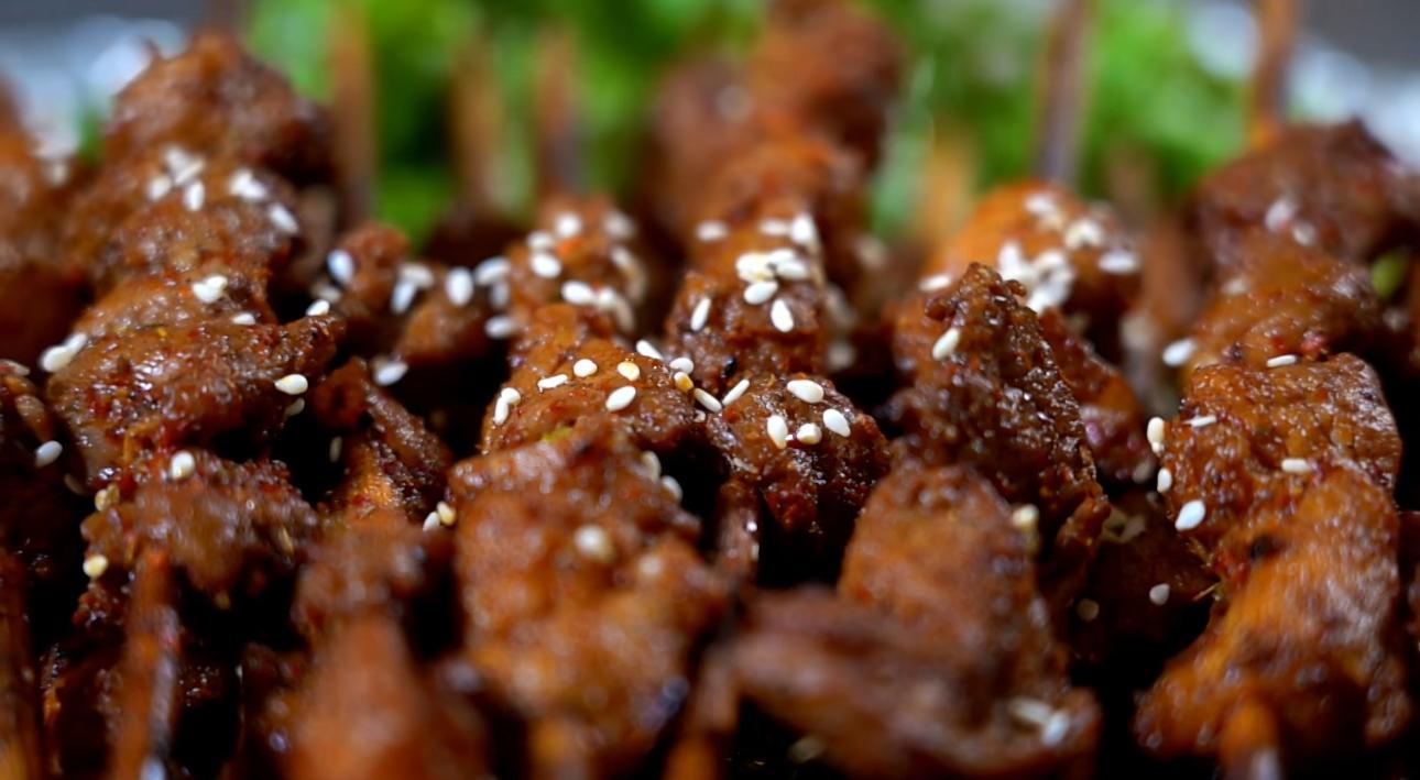 如果說,環(huán)縣的清晨是被一籠熱氣騰騰的羊肉包子,一碗鮮美的羊湯喚醒的,夜晚則是被一把外焦里嫩的羊肉串開啟的。