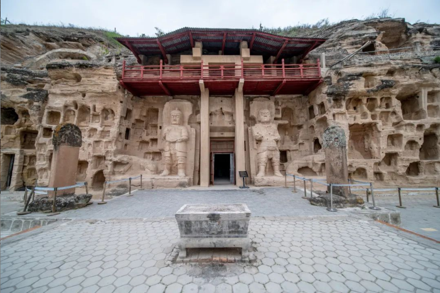從塬上一直向西,來到覆鐘山下,一座始建于北魏永平二年的石窟寺會(huì)呈現(xiàn)在您的面前。歷經(jīng)七個(gè)朝代、1500多年歷史石窟佛光,輝映著絲綢之路東西南北民族融合、文明互鑒的盛世輝煌,在茹河和蒲河的交匯處感受滴水藏海的深沉力量。