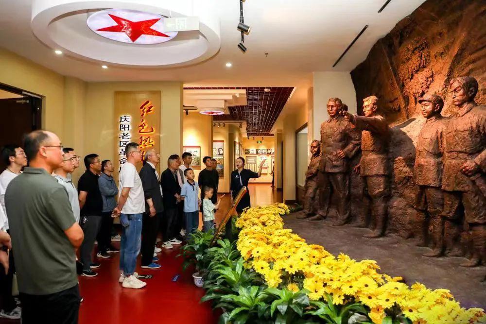 孩子們通過博物館流動展板,了解慶陽紅色歷史。