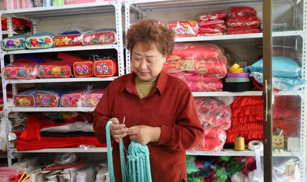 “咱們這邊做飯、看孩子上學(xué)的婦女,只要是來的人,我都給教呢,不論是誰,我是個(gè)沒脾氣的人,他們隨到隨教,只要他們來問,我都給說、給教?!杯h(huán)縣刺繡達(dá)人邊巧琴笑著說。