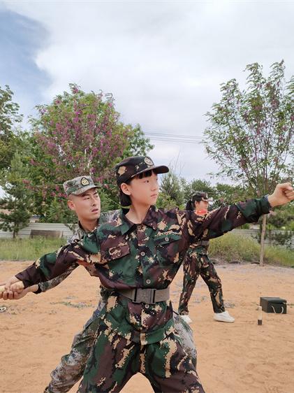 在訓(xùn)中玩,玩中悟,悟中學(xué),學(xué)中成?;顒觾?nèi)容融合了軍旅文化和體驗式教育理念,結(jié)合青少年體能、心理現(xiàn)狀,圍繞基礎(chǔ)軍事訓(xùn)練、自理能力培養(yǎng)、行為習(xí)慣養(yǎng)成、軍事趣味游戲、團(tuán)結(jié)協(xié)作訓(xùn)練等主題,寓教于樂,寓學(xué)于游,既有嚴(yán)肅的軍事技能學(xué)習(xí),又有趣味拓展訓(xùn)練,讓小記者們在嚴(yán)格、緊張、艱苦、興奮、快樂的體驗中學(xué)會自理、自立、自信、自強(qiáng)?!斑@是我第一次參加軍事拓展活動,非常有意思。通過這次活動,我不僅學(xué)到了國防知識,體會到軍人的辛苦,也收獲了快樂?!毙∮浾咄蹶畔枵f。