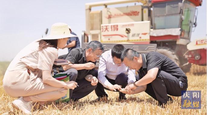 6月12日,正寧縣農(nóng)機(jī)化服務(wù)中心技術(shù)人員深入田間地頭,監(jiān)測小麥機(jī)收作業(yè)情況。 通訊員 秦麗麗 攝
