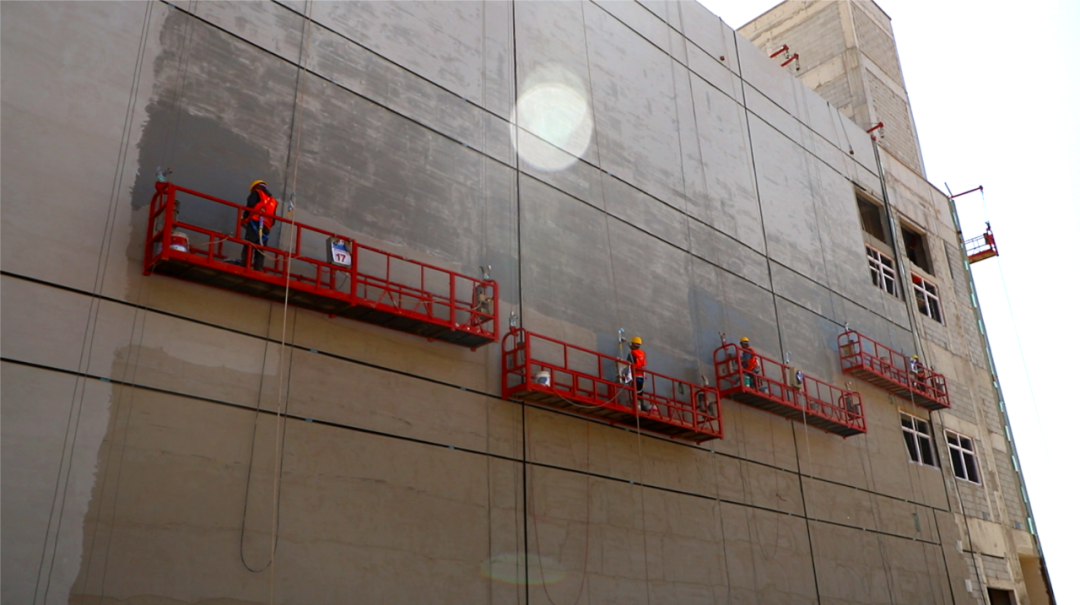 秦淮數(shù)據(jù)零碳數(shù)據(jù)中心項(xiàng)目施工現(xiàn)場(chǎng)工人正在進(jìn)行外墻裝飾施工