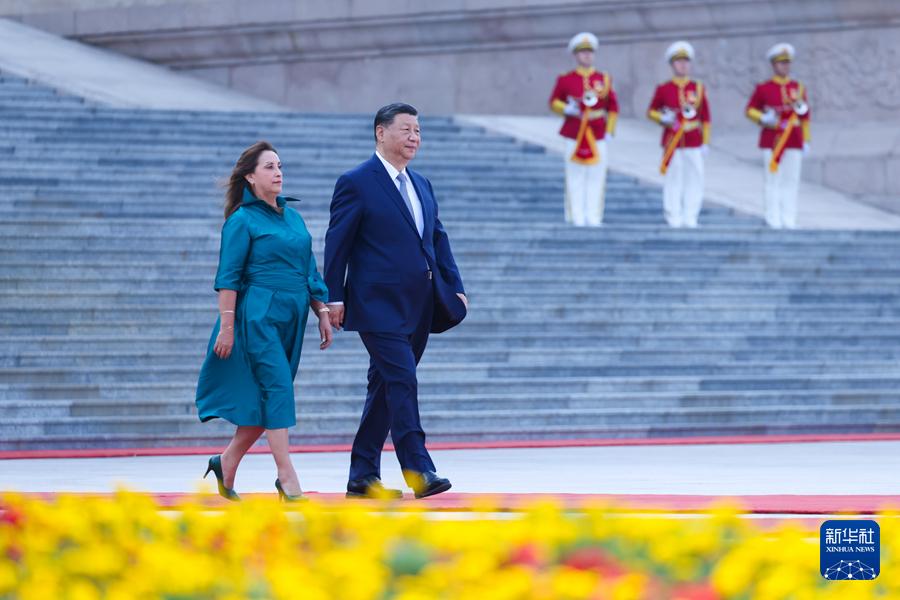 6月28日下午,國(guó)家主席習(xí)近平在北京人民大會(huì)堂同來華進(jìn)行國(guó)事訪問的秘魯總統(tǒng)博魯阿爾特舉行會(huì)談。這是會(huì)談前,習(xí)近平在人民大會(huì)堂東門外廣場(chǎng)為博魯阿爾特舉行歡迎儀式。新華社記者 高潔 攝