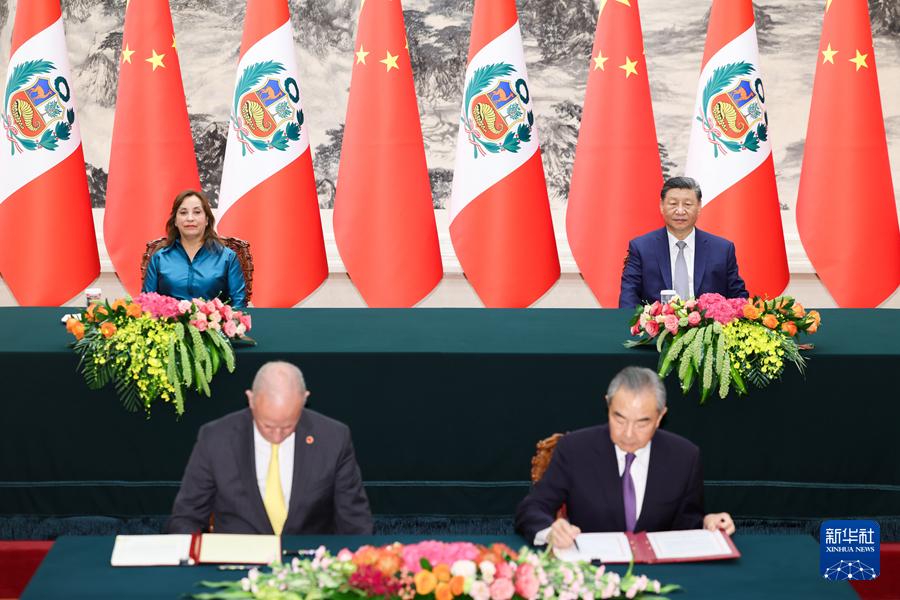會(huì)談后,兩國(guó)元首共同見證簽署《中華人民共和國(guó)政府和秘魯共和國(guó)政府2024年至2029年共同行動(dòng)計(jì)劃》以及經(jīng)貿(mào)合作、數(shù)字經(jīng)濟(jì)、科技創(chuàng)新、檢驗(yàn)檢疫、新聞媒體等領(lǐng)域多項(xiàng)雙邊合作文件。雙方宣布實(shí)質(zhì)性完成自由貿(mào)易協(xié)定升級(jí)談判。