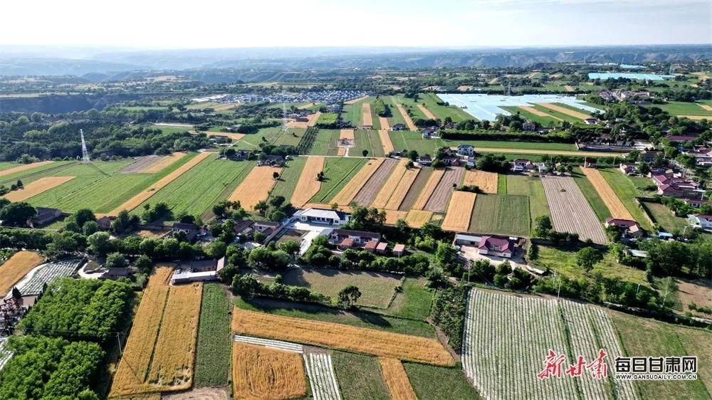 盛夏時(shí)節(jié)的慶陽(yáng)市西峰區(qū)后官寨鎮(zhèn)顯勝鄉(xiāng),金色的麥田與綠樹、村莊互相映襯,構(gòu)成一幅美麗的鄉(xiāng)村田園畫卷。