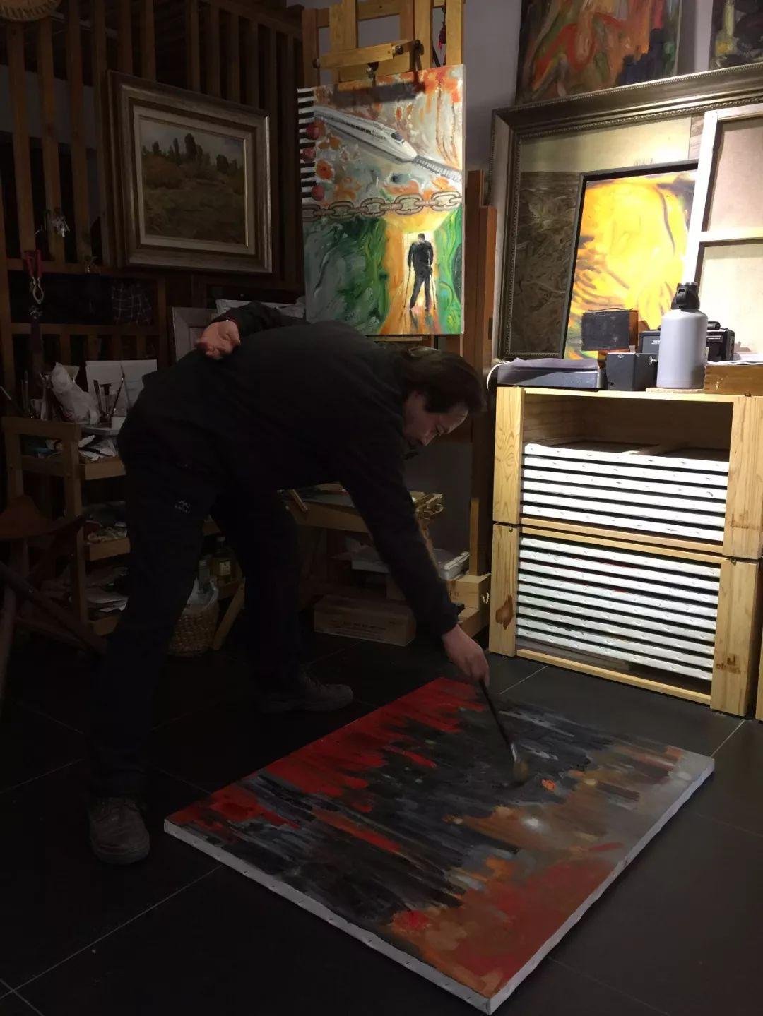 ▲左義林在工作室進(jìn)行陶瓷和油畫創(chuàng)作