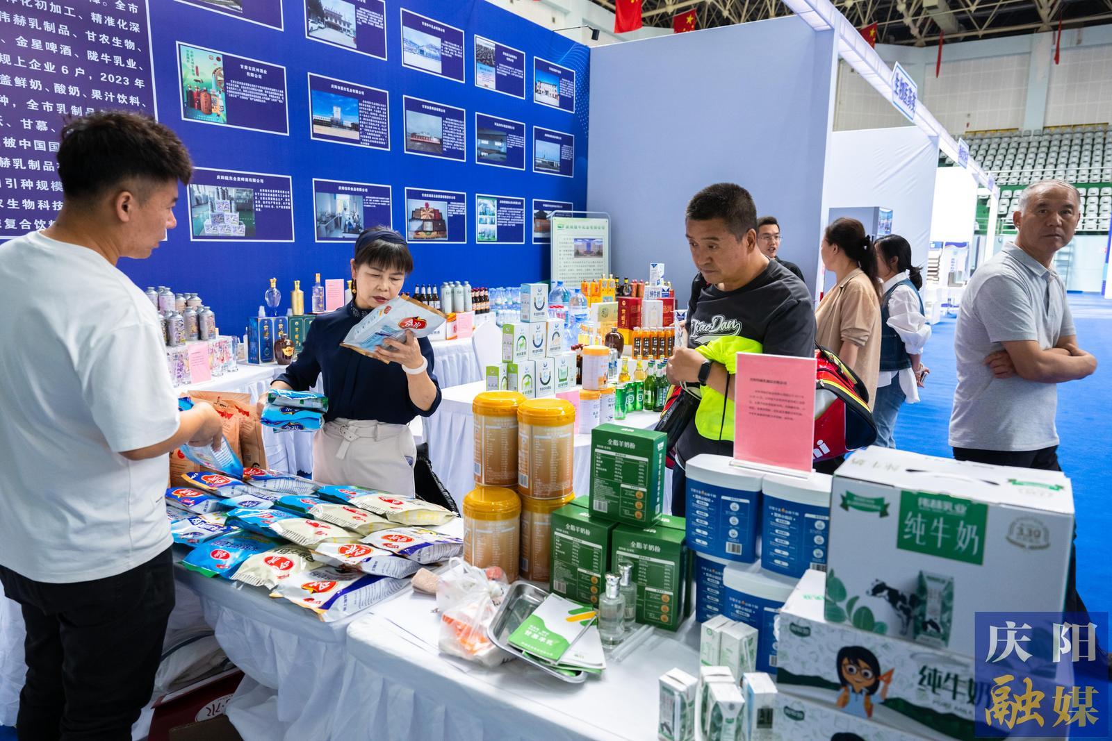 在慶陽體育館展示會主場館,前來對接洽談的上下游材料生產(chǎn)、供應鏈關聯(lián)企業(yè)代表絡繹不絕,數(shù)算產(chǎn)品類、建筑材料類、裝備制造類等展區(qū)人頭攢動;市民則品嘗、購買奶制品及飲料類產(chǎn)品、農(nóng)畜產(chǎn)品類產(chǎn)品,沉浸式體驗逛展。在室外大型設備展覽區(qū),不斷有市民咨詢了解機械類、新能源類產(chǎn)品,現(xiàn)場氣氛十分火熱。