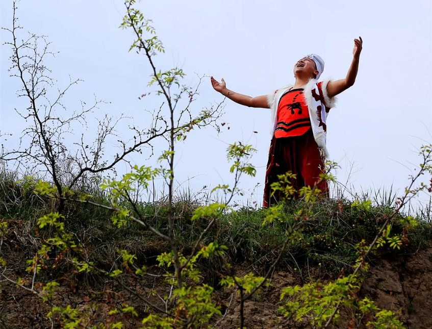 20世紀(jì)30年代至今,隴東信天游揭開了它嶄新的一頁,廣大勞動人民懷著激動的心情,用歡快悠揚(yáng)的曲調(diào),歌唱自由、歌唱解放,歌唱愉悅、明快的新生活、新時代?!扒Ю飭牙茁暼f里閃,上來些紅軍鬧共產(chǎn)。紅軍共產(chǎn)天下順,大家都盼著來紅軍,紅軍跟著那共產(chǎn)黨,要把那吃人的社會消滅光”;“陽灣上核桃河畔上柳,共產(chǎn)黨來了咱跟上走,長槍的短槍馬拐子槍,跟上共產(chǎn)黨打勝仗。拔起黃蒿帶起根,拿起狠心來鬧革命”……這些歌聲,從原始的癡情與執(zhí)念中生發(fā)而來,向著陽光而燦爛的遠(yuǎn)景里尋求出路、呼喚共鳴,都抒發(fā)了勞苦大眾、普通百姓翻身得解放、向往新生活的喜悅心情,表達(dá)了跟著共產(chǎn)黨鬧革命、打江山的堅定意念和信心。時易速更,萬象更新,隴東、環(huán)縣的信天游,已赫然成為了一道,隴東文化大餐之盛宴,老區(qū)錦繡文化藝術(shù)薈萃之經(jīng)典了。