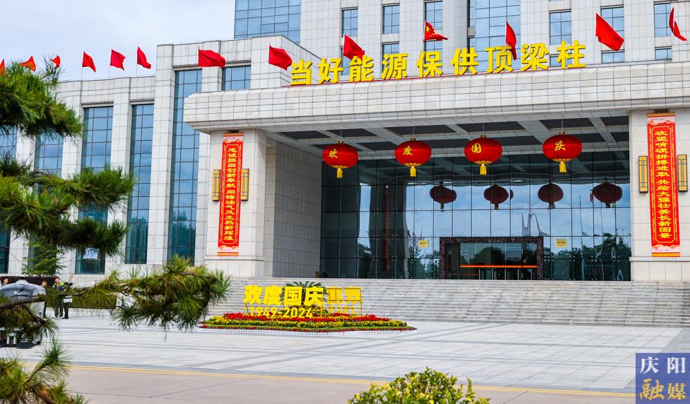 長慶油田隴東生產(chǎn)指揮中心張燈結(jié)彩,喜迎國慶。