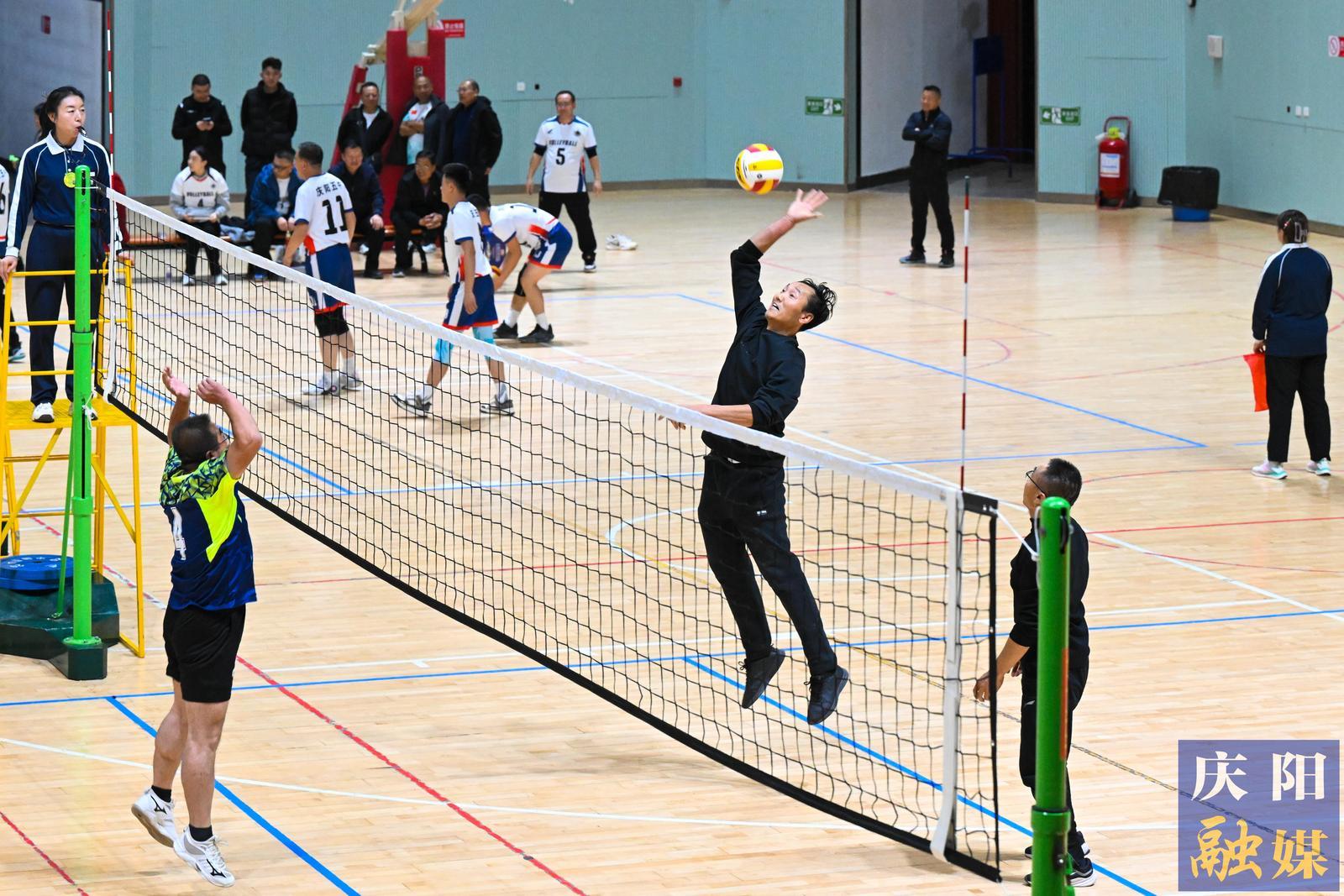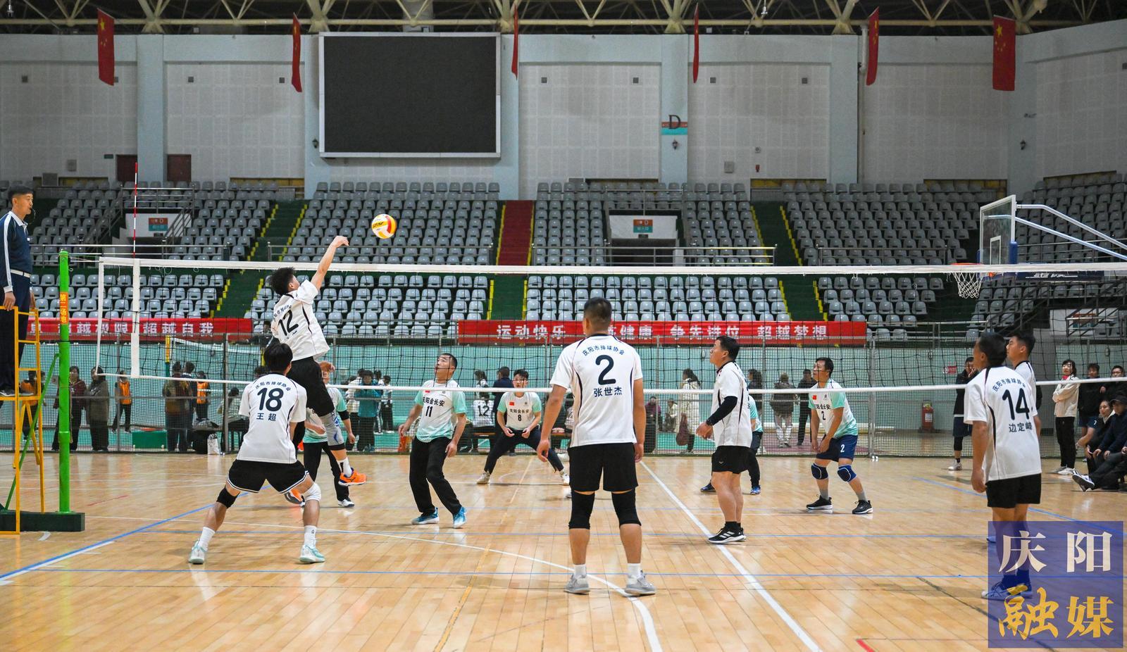 男子組比賽,慶陽市排球協(xié)會代表隊(duì)對戰(zhàn)快樂排球代表隊(duì)。