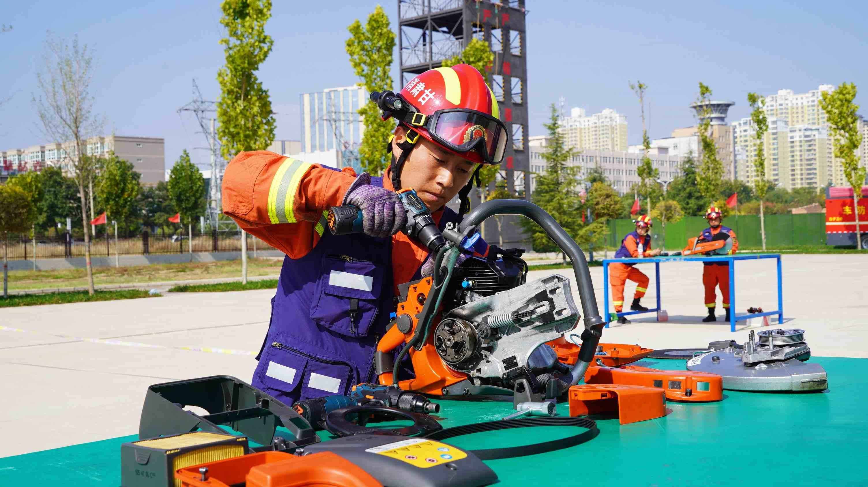 甘肅省消防救援隊(duì)伍“保障先鋒·2024”跨區(qū)域戰(zhàn)勤保障拉動(dòng)演練中,慶陽市消防救援支隊(duì)裝備技師綜合技能操現(xiàn)場。