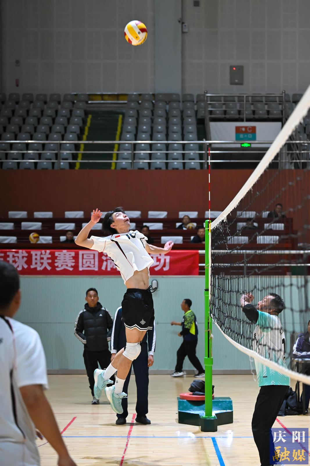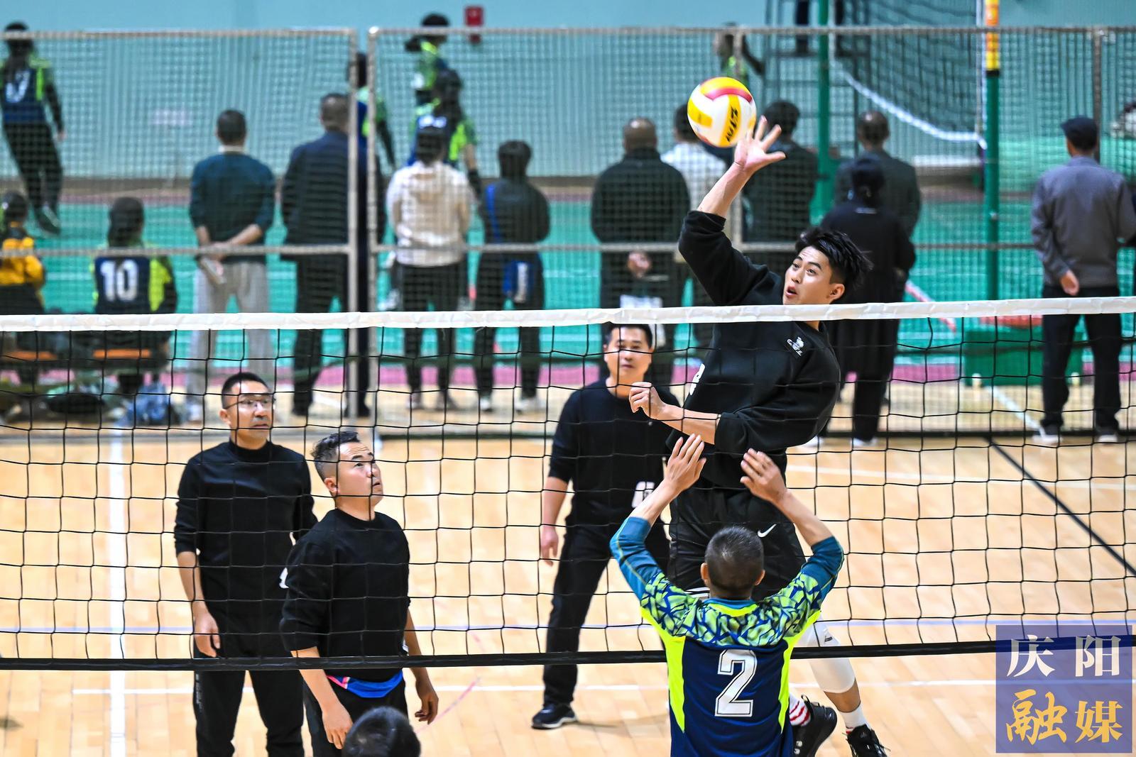 男子組決賽,隴魂體育代表隊以3:2戰(zhàn)勝慶陽二中代表隊獲得第一名(11月10日攝)。