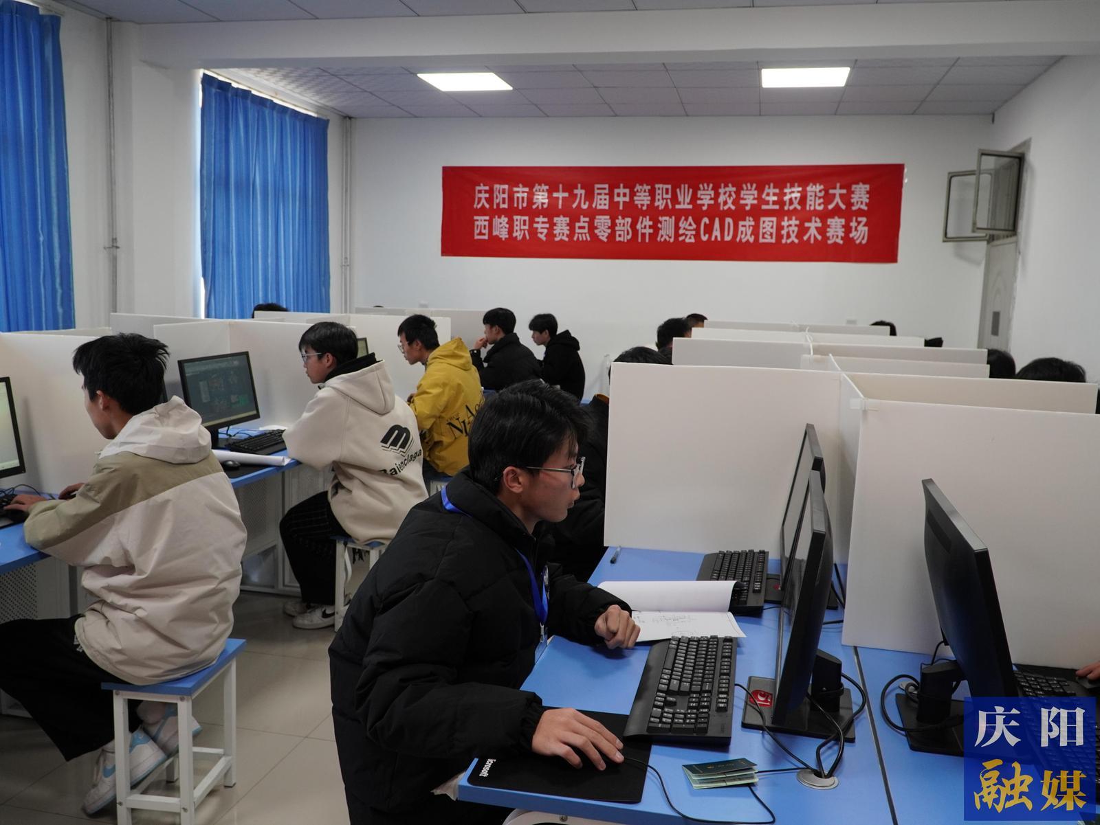 零部件測(cè)繪與CAD成圖技術(shù)賽場(chǎng)參賽選手正在完成三維建模和裝配。慶陽(yáng)融媒記者 劉英娟 攝