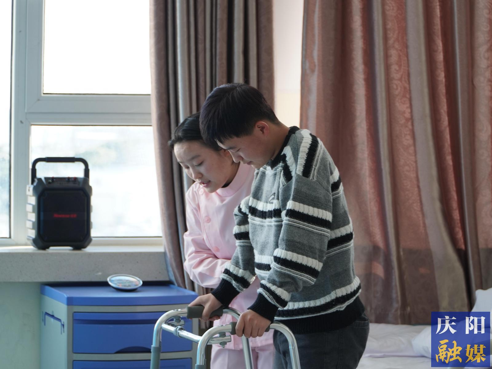 養(yǎng)老照護(hù)賽場(chǎng)參賽選手正在進(jìn)行照護(hù)服務(wù)。慶陽(yáng)融媒記者 劉英娟 攝