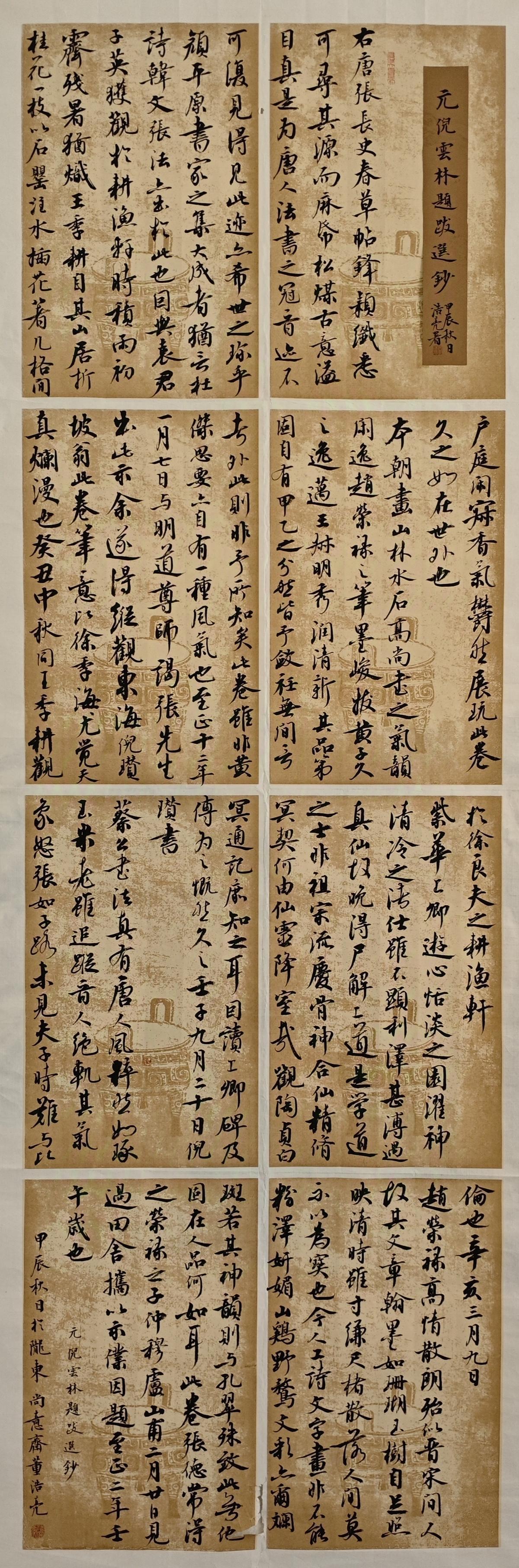 浩亮兄是典型的文人,人內(nèi)斂,性雅和,作書畫畫細(xì)膩入微。早年喜歡寫詩作文,后來工作繁忙,索性拿起了毛筆,寫起了書法,從顏體楷書入門,轉(zhuǎn)而習(xí)小楷,起手王寵、入門《靈飛經(jīng)》,提高《黃庭經(jīng)》、十三行,近年習(xí)米芾行書。其書筆致細(xì)膩、毫發(fā)畢現(xiàn),細(xì)節(jié)耐人尋味,尤擅書冊頁、手札,牽絲映帶了了分明,行氣貫通始終,被眾多藏家所器重。