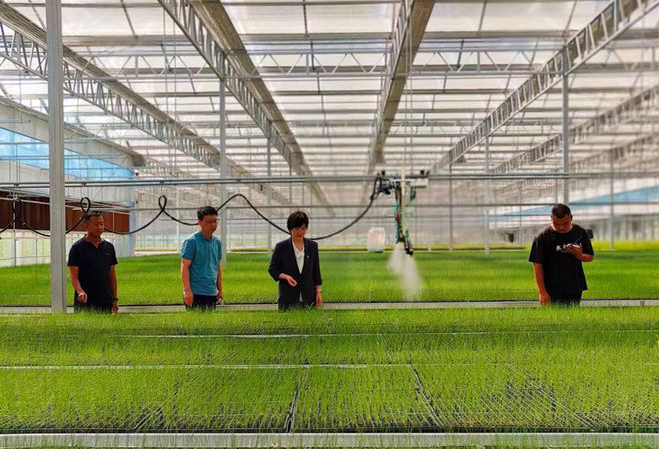 2023年10月,該基地建成集溫、濕、光、水、肥、氣自動(dòng)控制于一體的數(shù)字化、智能化育苗中心1處,塑料數(shù)字連棟溫室73棟,玻璃數(shù)字連棟溫室2棟。一座集“工廠化育苗、高品質(zhì)蔬菜生產(chǎn)、新品種示范種植、農(nóng)業(yè)觀光采摘、實(shí)踐培訓(xùn)”五大功能于一體的數(shù)字化、智能化、綠色化現(xiàn)代農(nóng)業(yè)示范園區(qū)拔地而起。