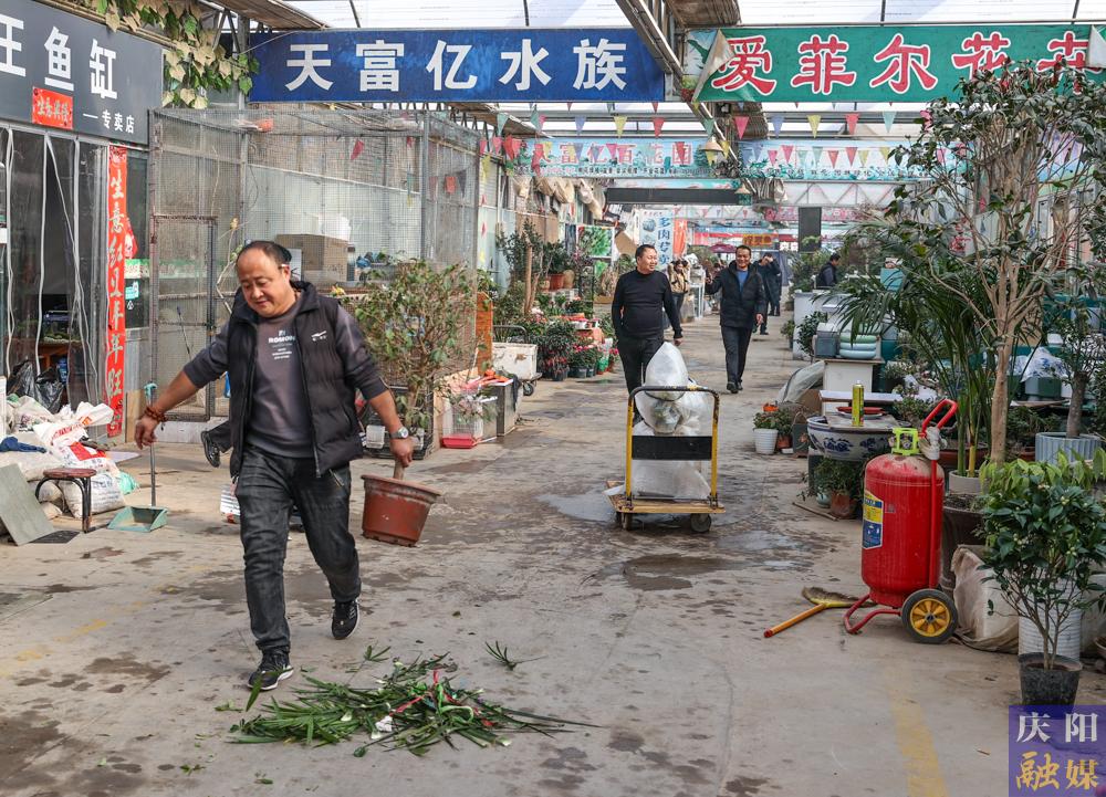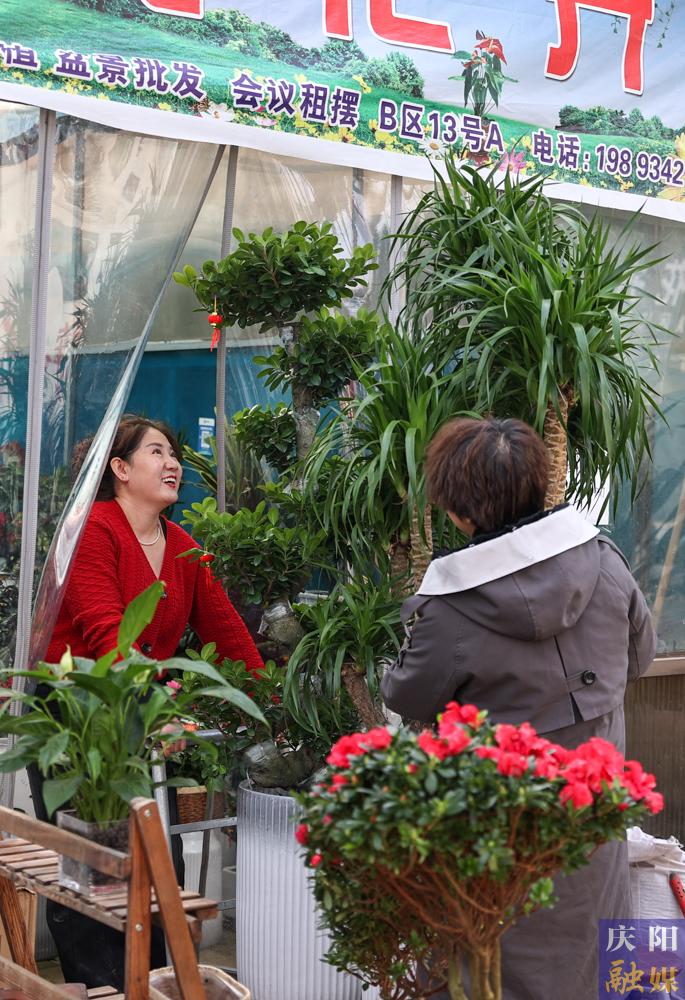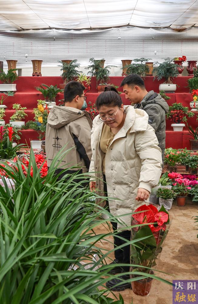 12月15日,市民在西峰區(qū)天富億花卉市場選購心儀盆栽。