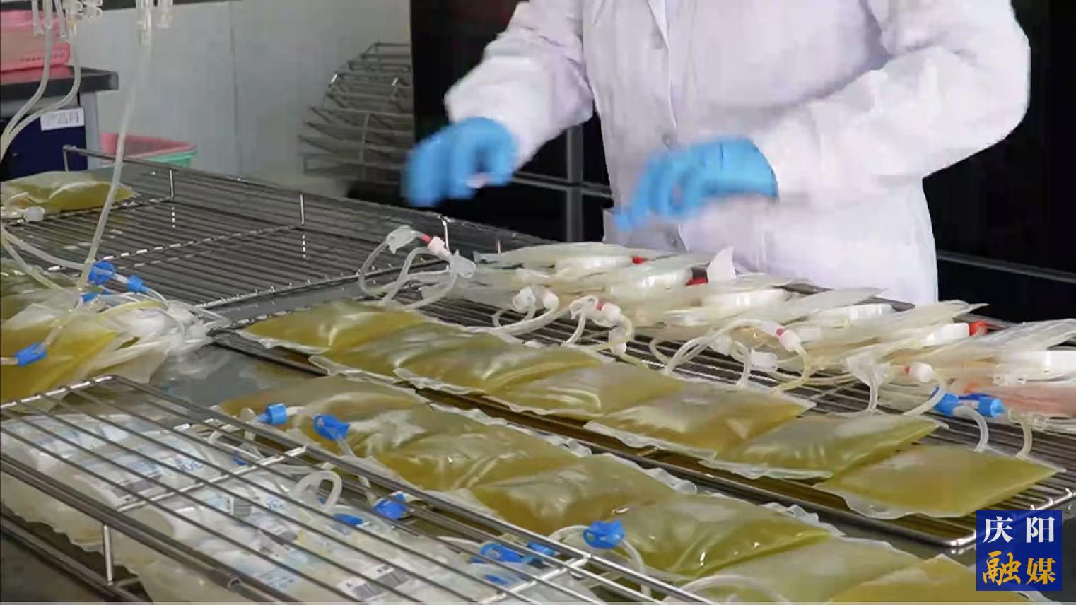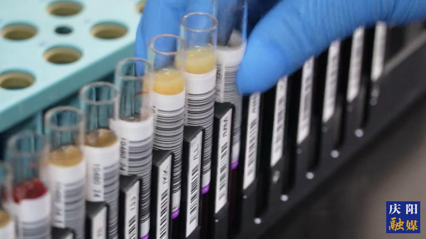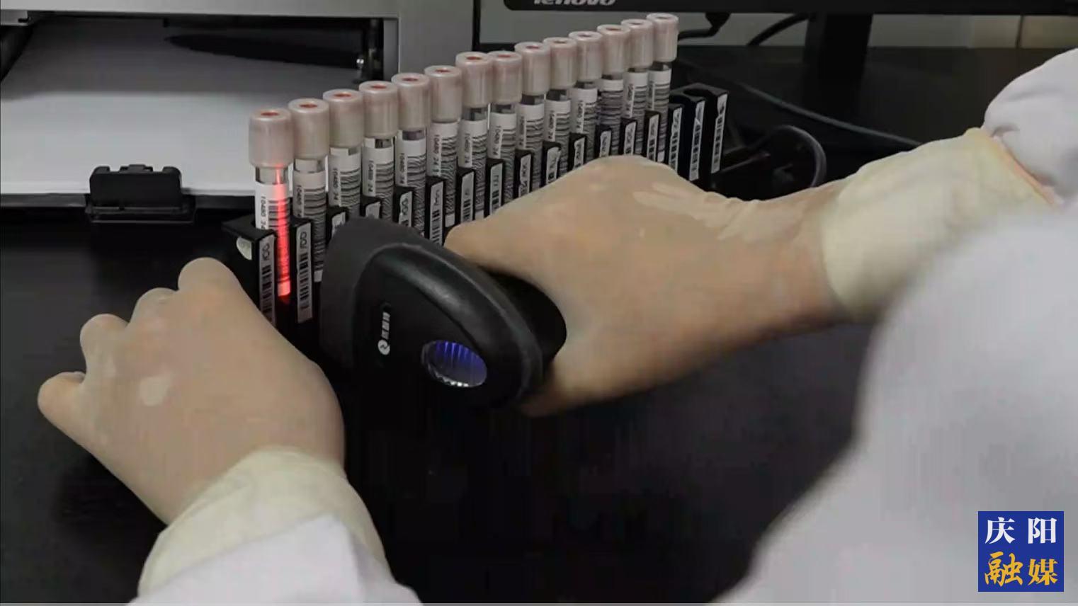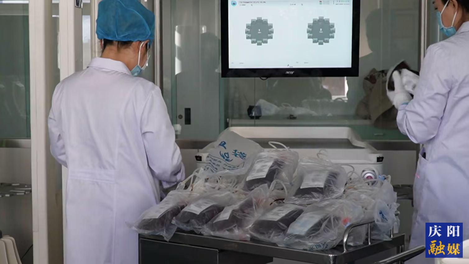 慶陽(yáng)市中心血站工作人員對(duì)血液進(jìn)行檢測(cè)。