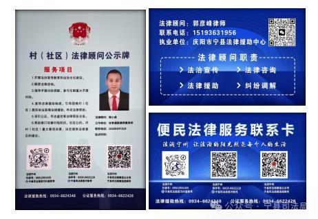 寧縣司法局設(shè)計(jì)制作的法律顧問(wèn)公示牌、便民法律服務(wù)聯(lián)系卡