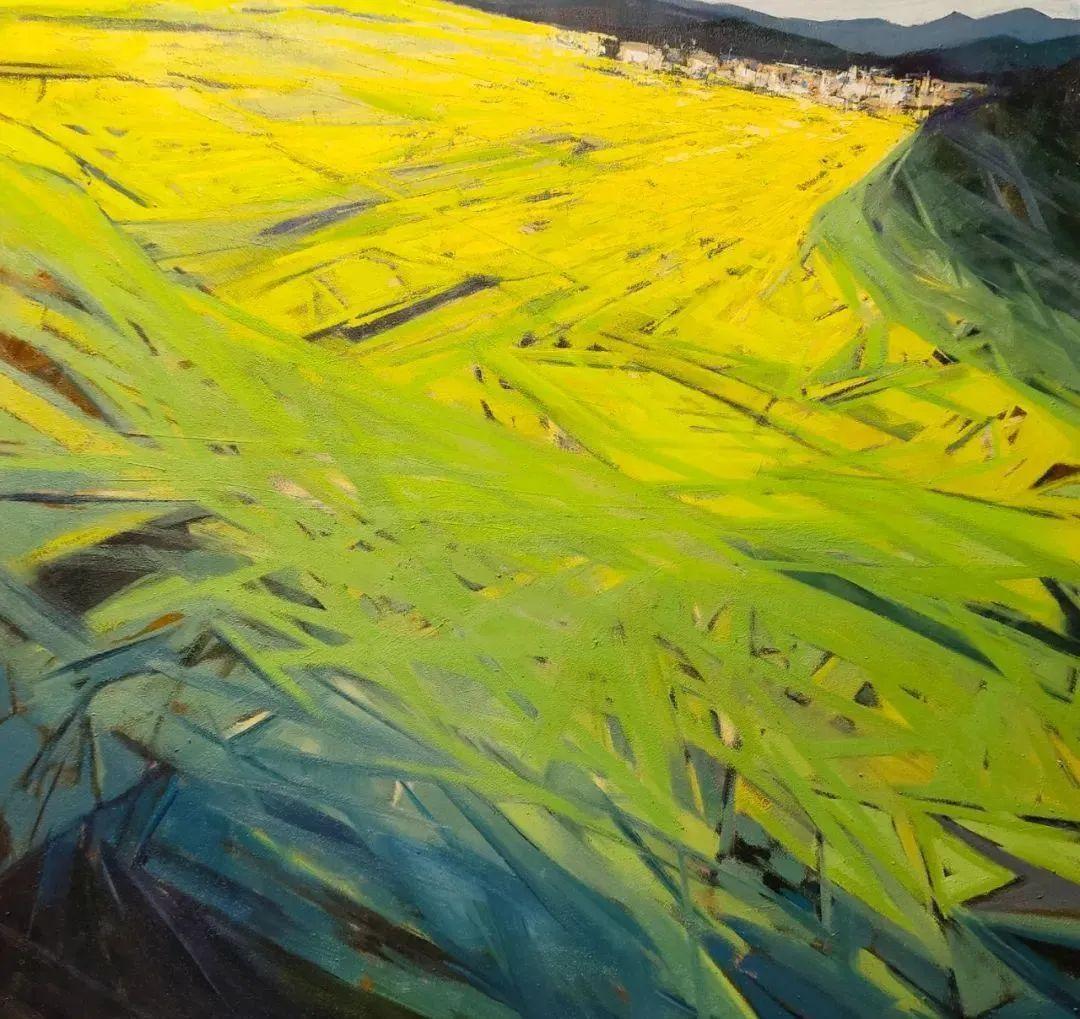 布面油畫(huà) 《春染隴山》 100cmx100cm