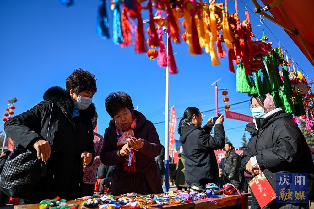 民俗手工藝品展區(qū)吸引群眾目光。