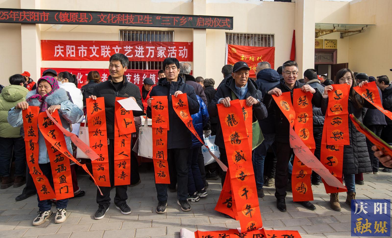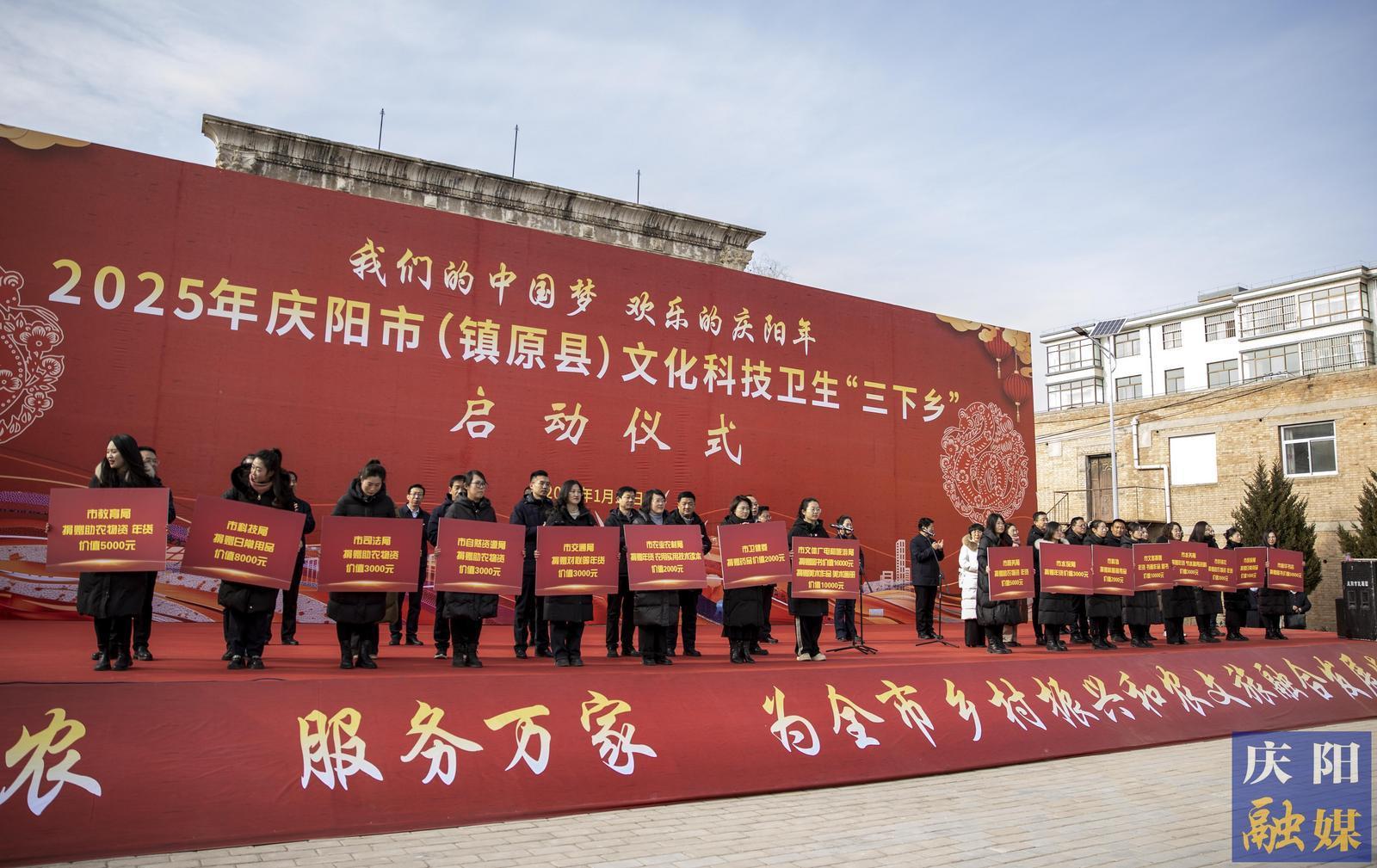 啟動儀式上,市、縣有關部門、單位、企業(yè)向鎮(zhèn)原縣太平鎮(zhèn)捐贈了價值12萬余元的農(nóng)業(yè)物資、書籍年貨等?,F(xiàn)場開展了文藝表演、政策宣講、專家義診等系列活動。