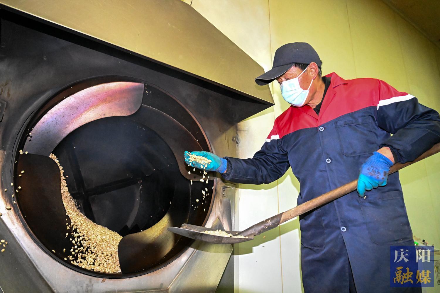 寧縣康盛源藥業(yè)有限責(zé)任公司,工人在烘烤中藥材。
