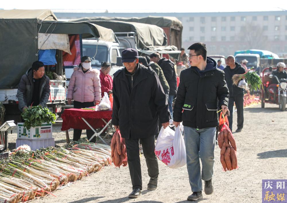 西峰區(qū)肖金鎮(zhèn)年貨市場上蔬菜走俏。