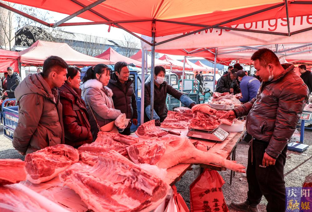 寧縣焦村鎮(zhèn)人們購買豬肉。