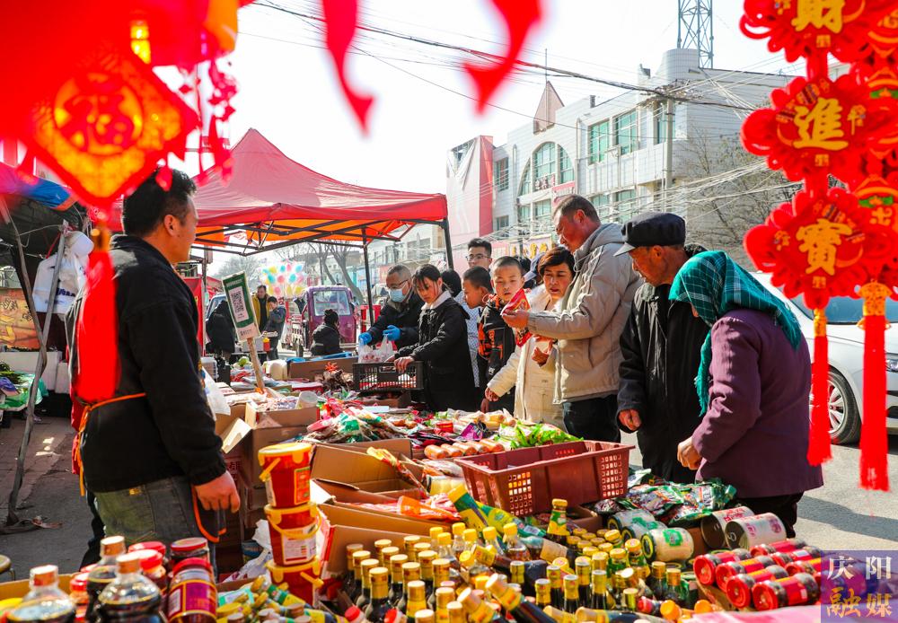 西峰區(qū)肖金鎮(zhèn)選購年貨的村民。