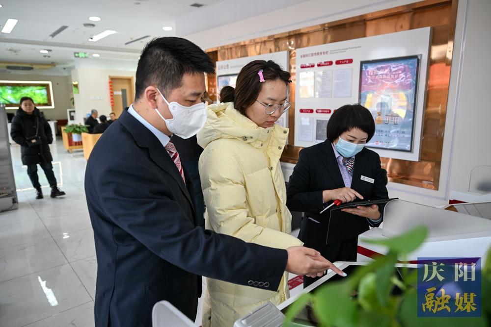 慶陽(yáng)市政務(wù)服務(wù)大廳內(nèi),工作人員熱情接待前來(lái)咨詢(xún)辦事的群眾。