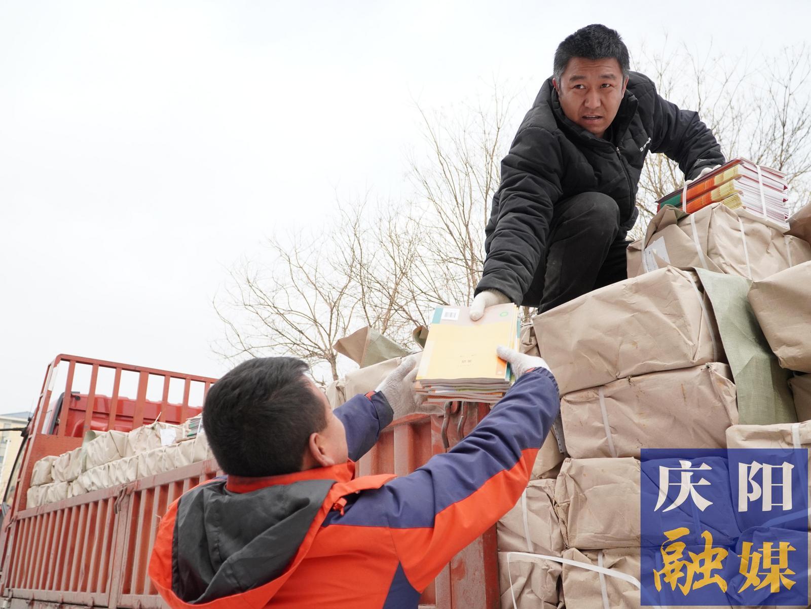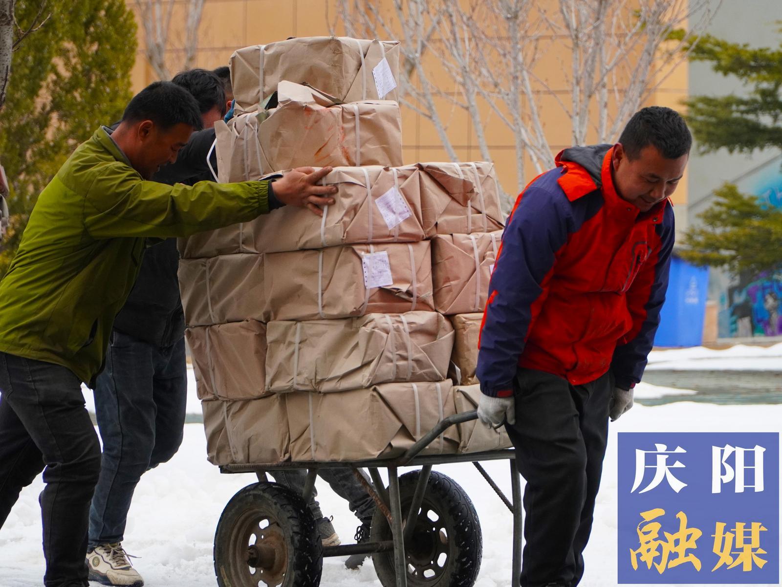 北師大慶陽(yáng)實(shí)驗(yàn)學(xué)校工作人員搬運(yùn)新書本