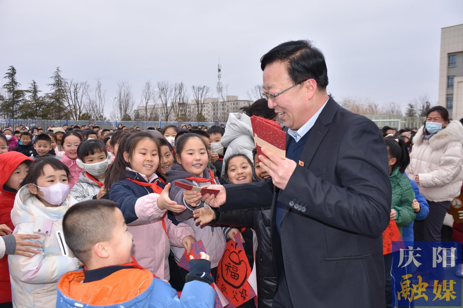慶陽(yáng)市實(shí)驗(yàn)小學(xué)校長(zhǎng)孫海東以“燃內(nèi)心斗志 做‘美德學(xué)生’”為主題寄語(yǔ)學(xué)子:順境持謙遜之姿,逆境守豁達(dá)之態(tài);以書(shū)香潤(rùn)澤心靈,以歷練涵養(yǎng)氣度;突破慣性思維,培植終生志趣;善思篤行,勇拓新局,師生同心擘畫(huà)美好教育藍(lán)圖,共鑄特色育人品牌。