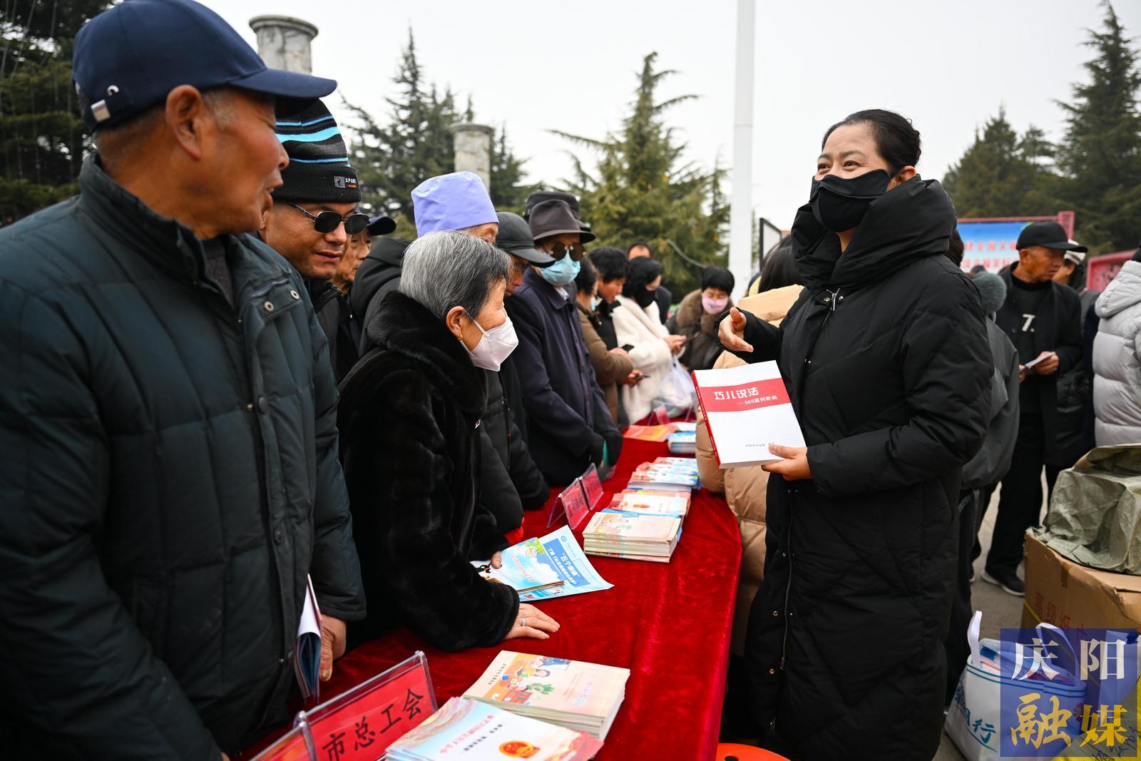 慶陽市法院工作人員向市民宣傳《婦女權(quán)益保障法》等法律法規(guī)。